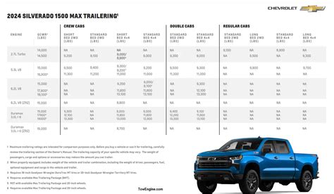 Web Web 5 Rows Chevy Silverado 1500 Towing Capacity For 2.7 L Turbo Engine (2021) 3.0 L Duramax.